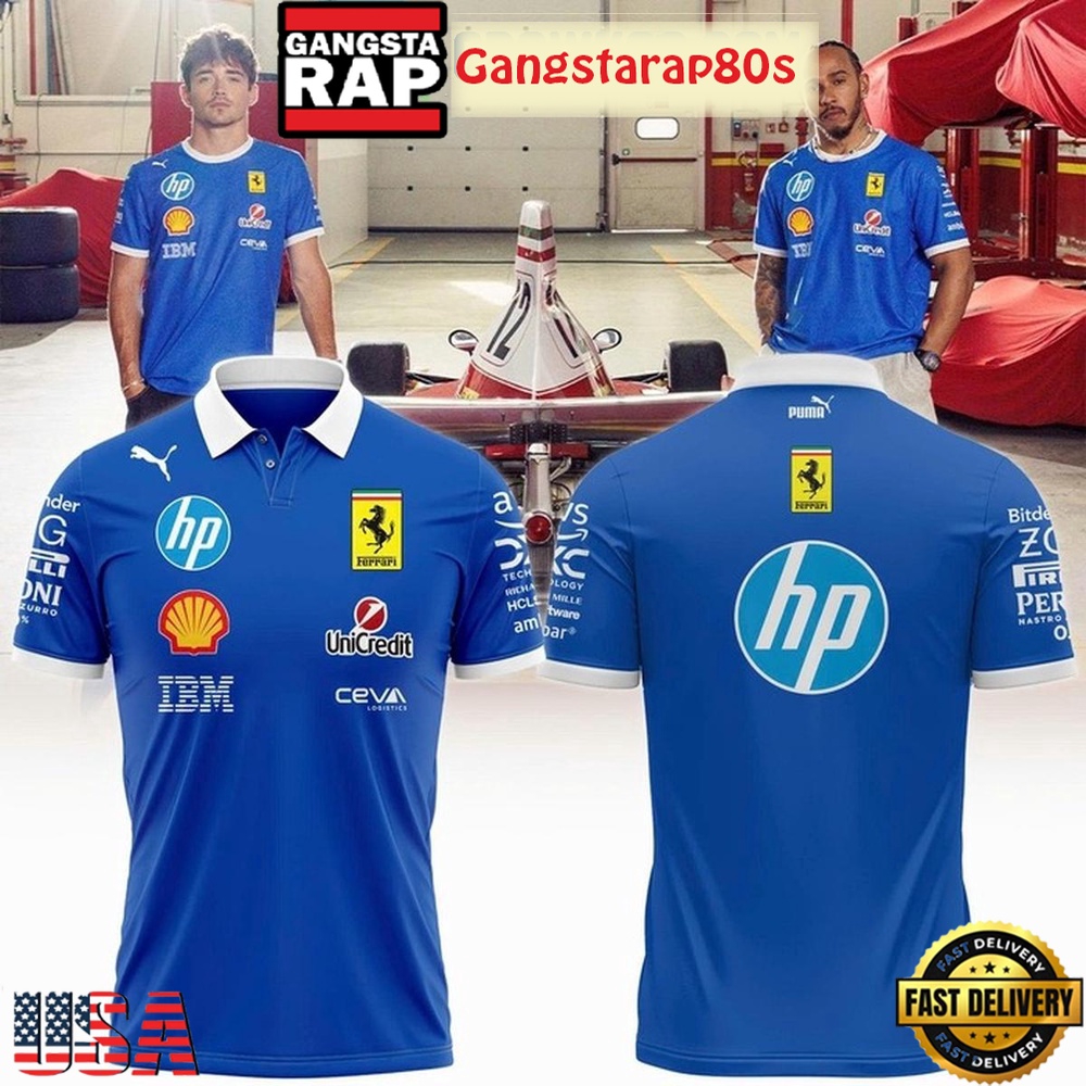 Photos Of Scuderia Ferrari HP 2025 Monza Blue Limited Edition Polo Shirt