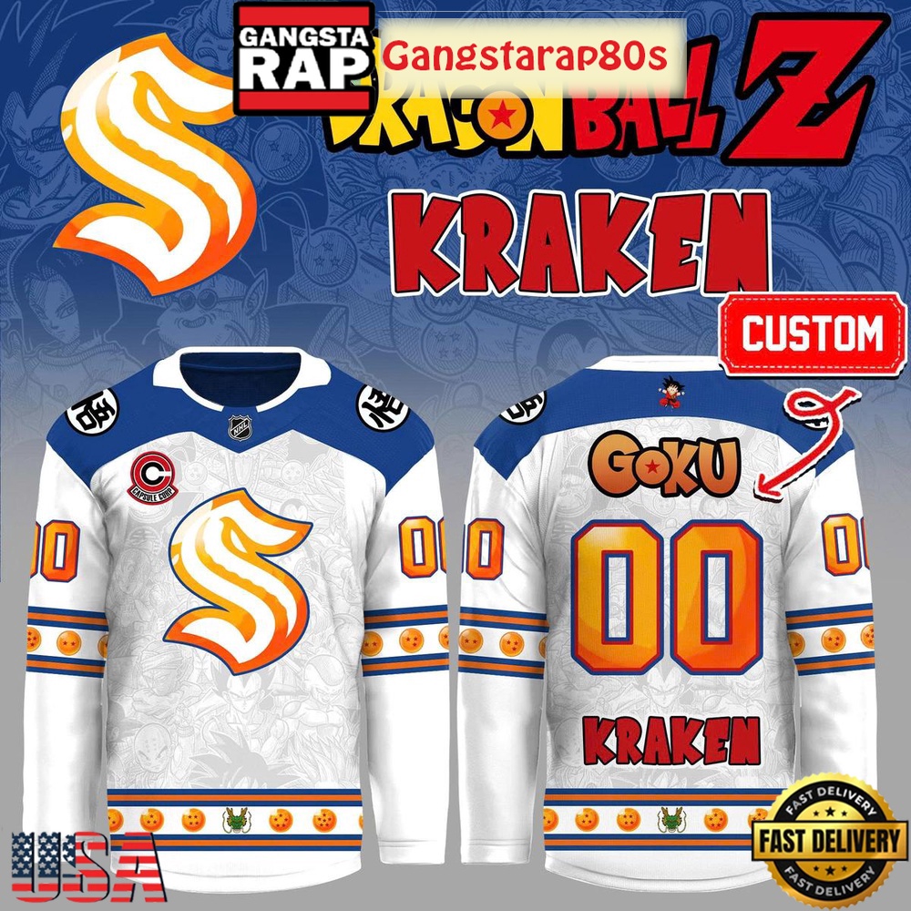 Photos Of Seattle Kraken x Dragonball Z Super Aura Custom Hockey Jersey