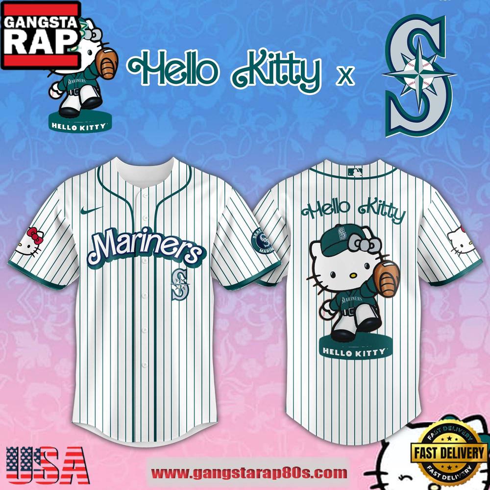 Photos Of Seattle Mariners MLB 2026 Hello Kitty Limited Fan Baseball Jersey Shirt