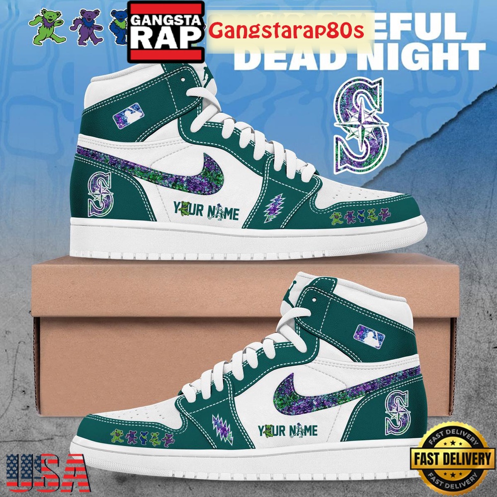 Discover the exclusive 2023 Seattle Mariners x Grateful Dead Night Air Jordan 1 Sneakers, a custom special edition that combines two iconic cultures into one stunning design. These limited-edition sneakers are perfect for fans of the Seattle Mariners, lovers of the legendary Grateful Dead, and sneaker enthusiasts who appreciate a unique blend of art and athletic fashion.