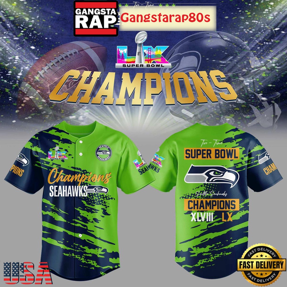Photos Of Seattle Seahawks 2026 Champions Super Bowl LX Baseball Jersey