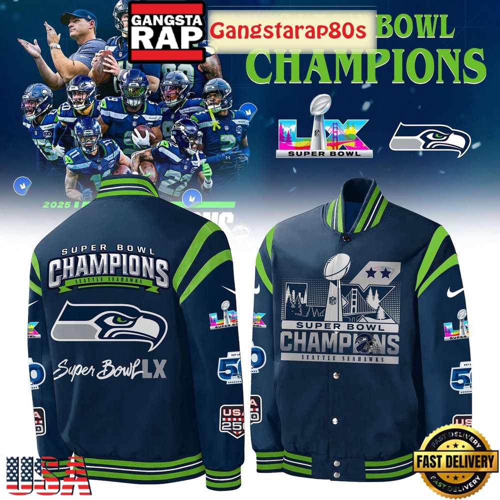Seattle Seahawks Celebrating Super Bowl LX Champions 2026 Baseball Jacket