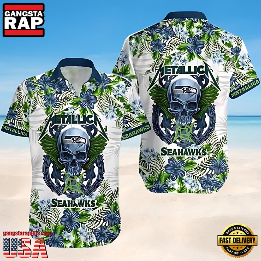 Seattle Seahawks NFL Skull and Flower Pattern Metallica Short Sleeve Hawaiian Shirt