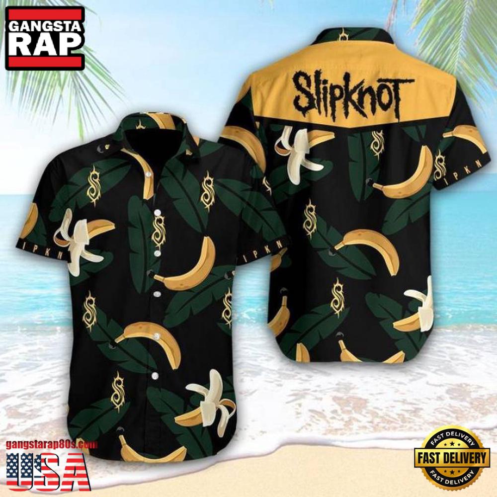 Crafted in 2023, this shirt features cutting-edge design elements that highlight the vibrant banana prints intermixed with subtle nods to Slipknot’s trademark imagery, offering a fresh take on traditional Hawaiian shirt style. The lightweight, breathable fabric ensures comfort and durability, making it an ideal choice for summer events, concerts, and beach outings where style and ease are paramount.