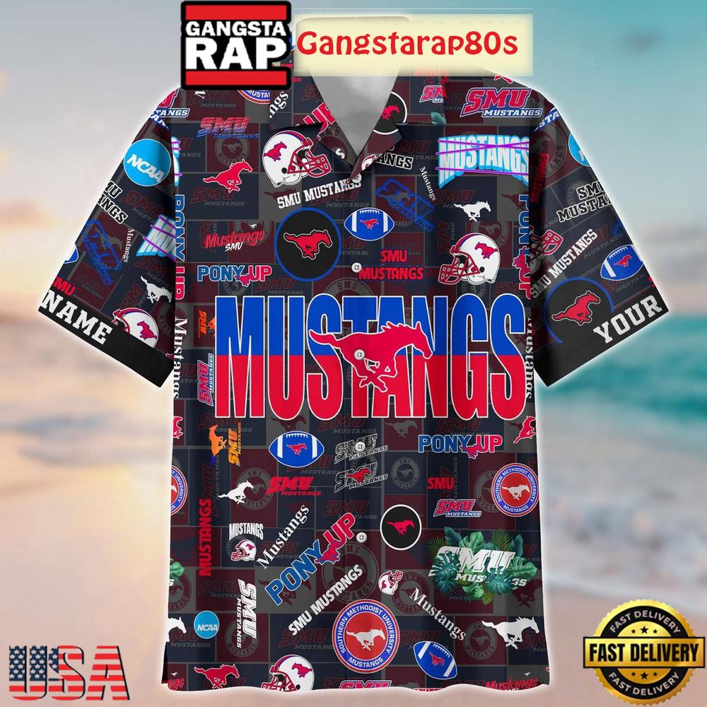 Photos Of SMU Mustangs Solgan Pony Up True Fan Spirit Custom Name Aloha Hawaiian Shirt