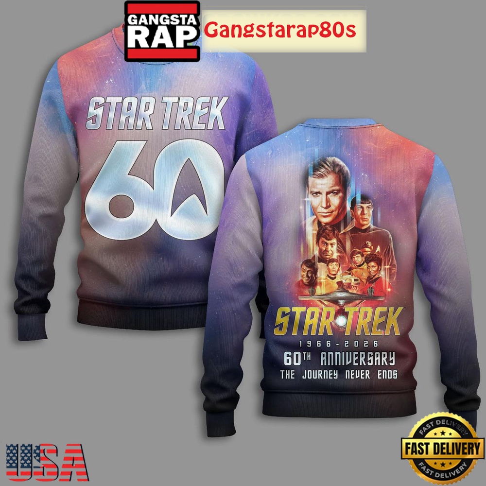 Celebrate the enduring legacy of an iconic franchise with our Star Trek 60th Anniversary Sweatshirt, a must-have piece for any dedicated fan. This 1966-2026 commemorative sweatshirt offers a unique way to express your passion for the beloved series that has inspired generations. Made with a soft, high-quality fabric blend, this sweatshirt ensures both comfort and durability, allowing you to boldly go about your day without compromise.