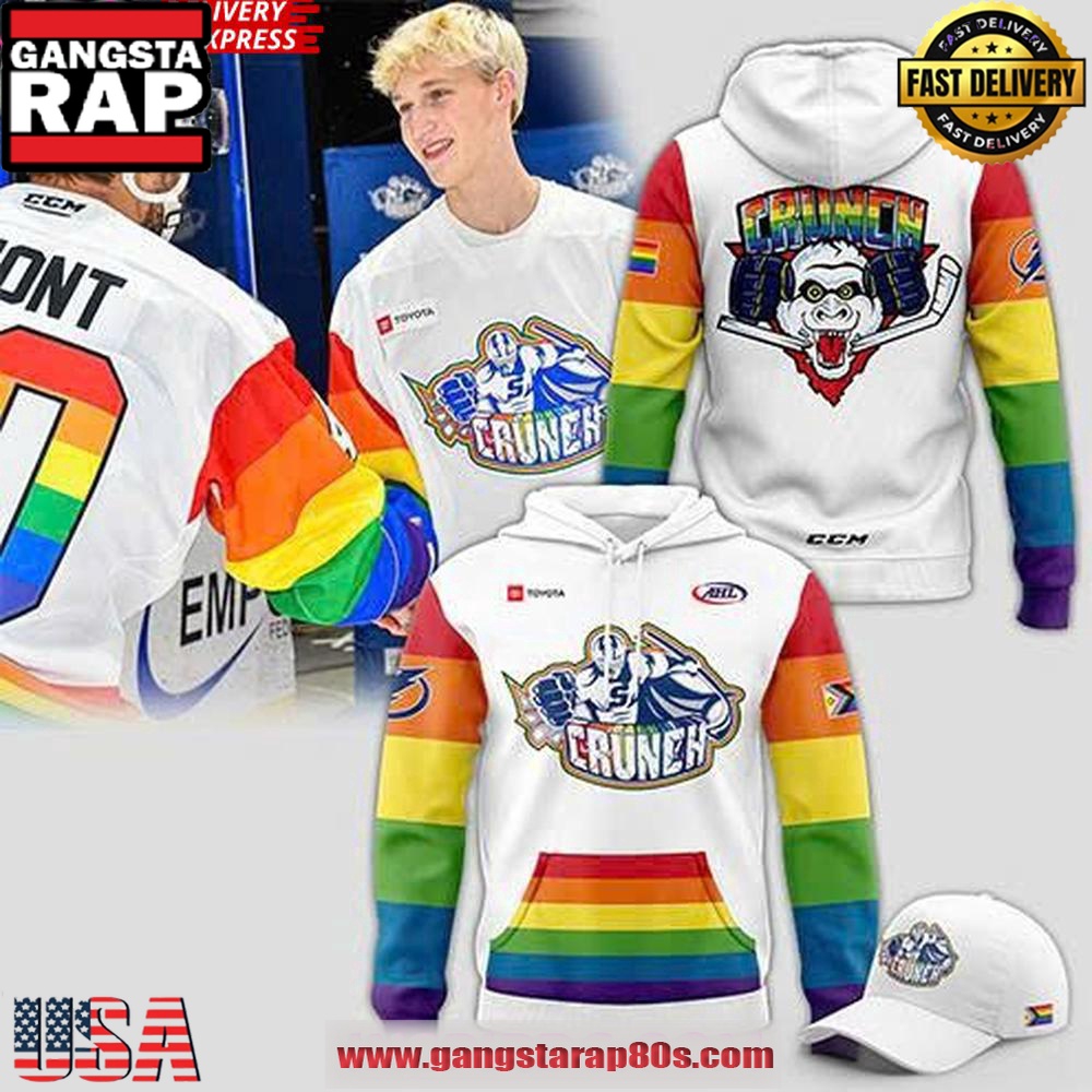 Key long-tail keywords like “Syracuse Crunch Pride Hoodie 2025” and “White All Over Print Pride Hoodie” are perfectly combined with the seasonal trend of Pride apparel, setting it apart from typical fan merchandise. With its relevance to current trends in fashion and team merchandise, this hoodie appeals to a wide range of audiences, from die-hard hockey fans to those supporting LGBTQ+ causes.