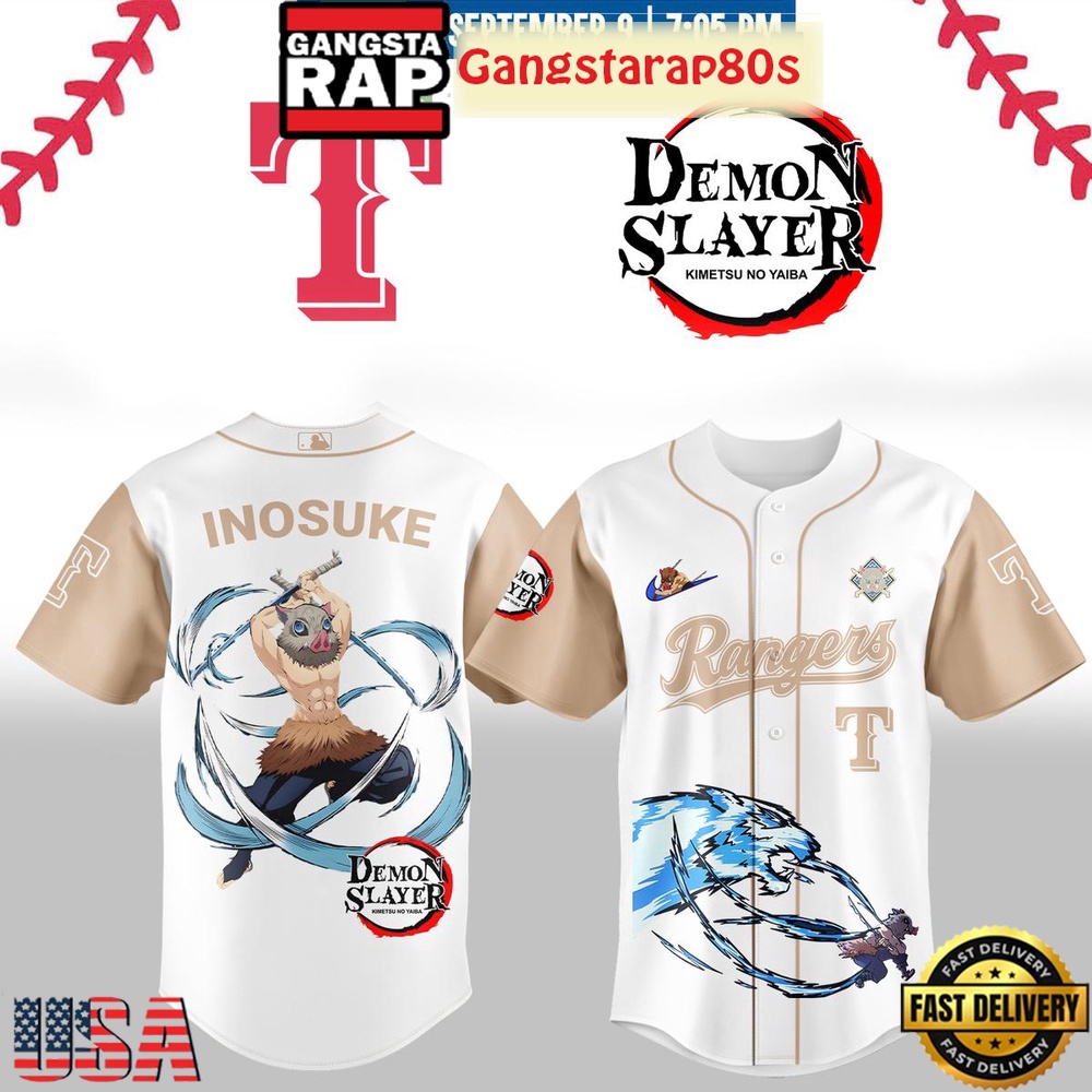 Unveiling the Texas Rangers Demon Slayer Inosuke Limited Edition Baseball Jersey