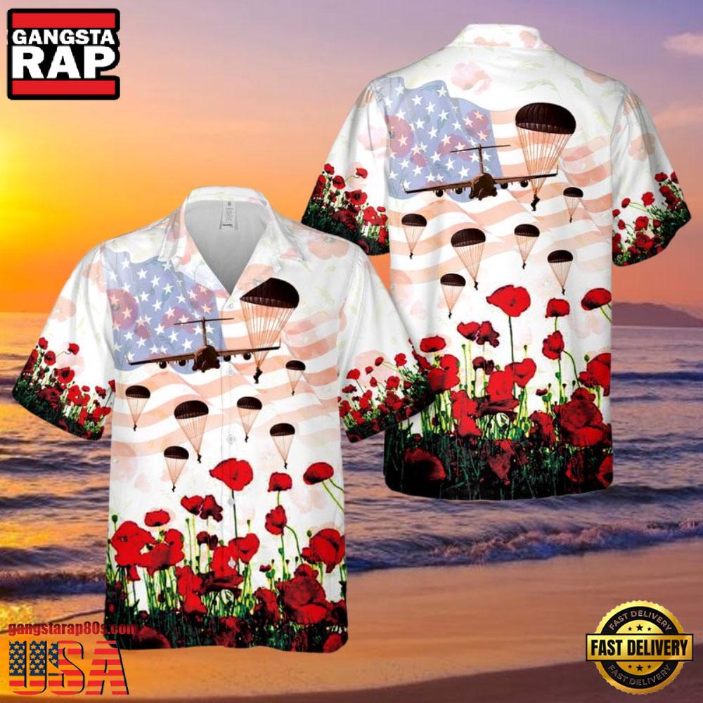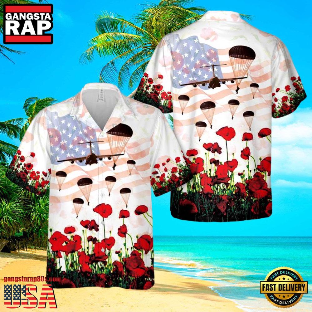 Photos Of Us Army Paratroopers And Poppies Veteran Hawaiian Shirt