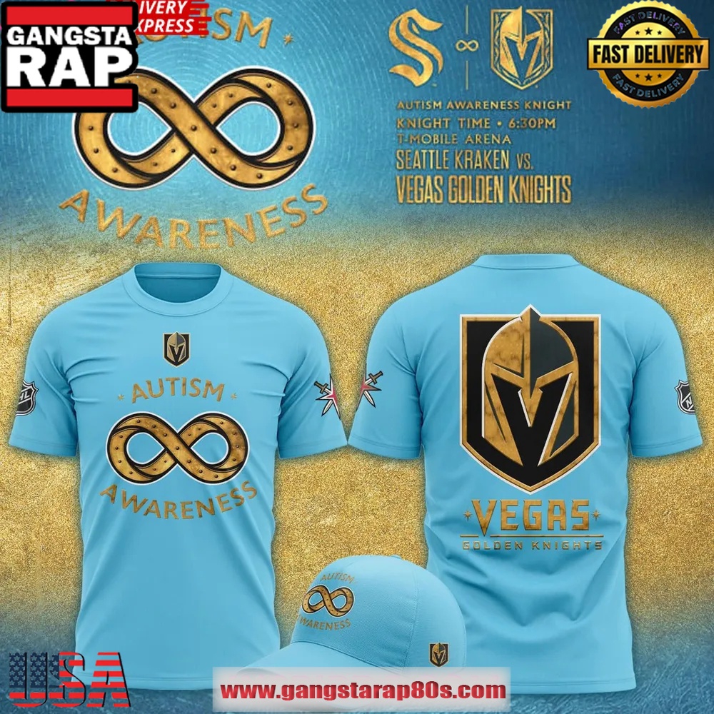 Expertly crafted from high-quality materials, the t-shirt offers supreme comfort and durability. The bold design features the iconic Vegas Golden Knights logo alongside a unique autism awareness motif, set against a background of vibrant colors that represent the spirit of unity and inclusivity. With the year 2025 prominently integrated into the design, this shirt serves as a memorable, collector’s item and a conversation starter.