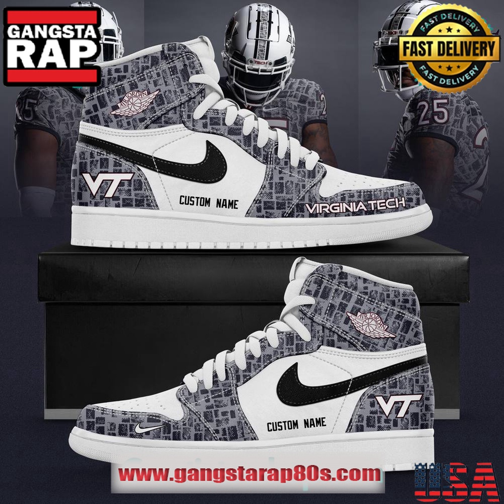Photos Of Virginia Tech Hokies 2025 Gray Camo Limited Edition Custom Air Jordan 1 Sneakers Shoes