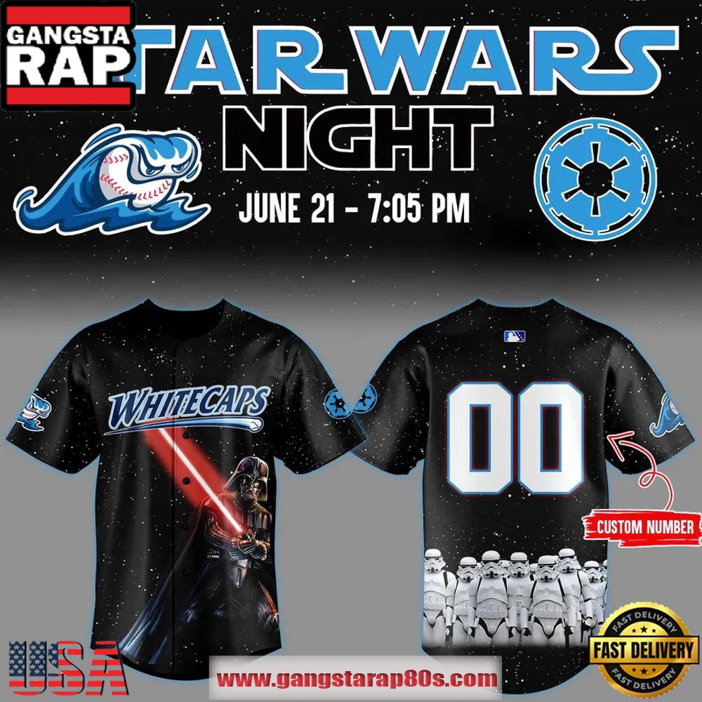 Featuring a carefully crafted design inspired by the epic Star Wars universe, this jersey is more than just apparel—it’s an invitation to be part of a galactic adventure. The striking graphics and high-quality fabric ensure that you stand out in the crowd, while the comfortable fit allows you to support your team without compromising on style or comfort. The 2023 Star Wars themed design brings together elements that both celebrate the legendary film series and show support for the West Michigan White Caps.