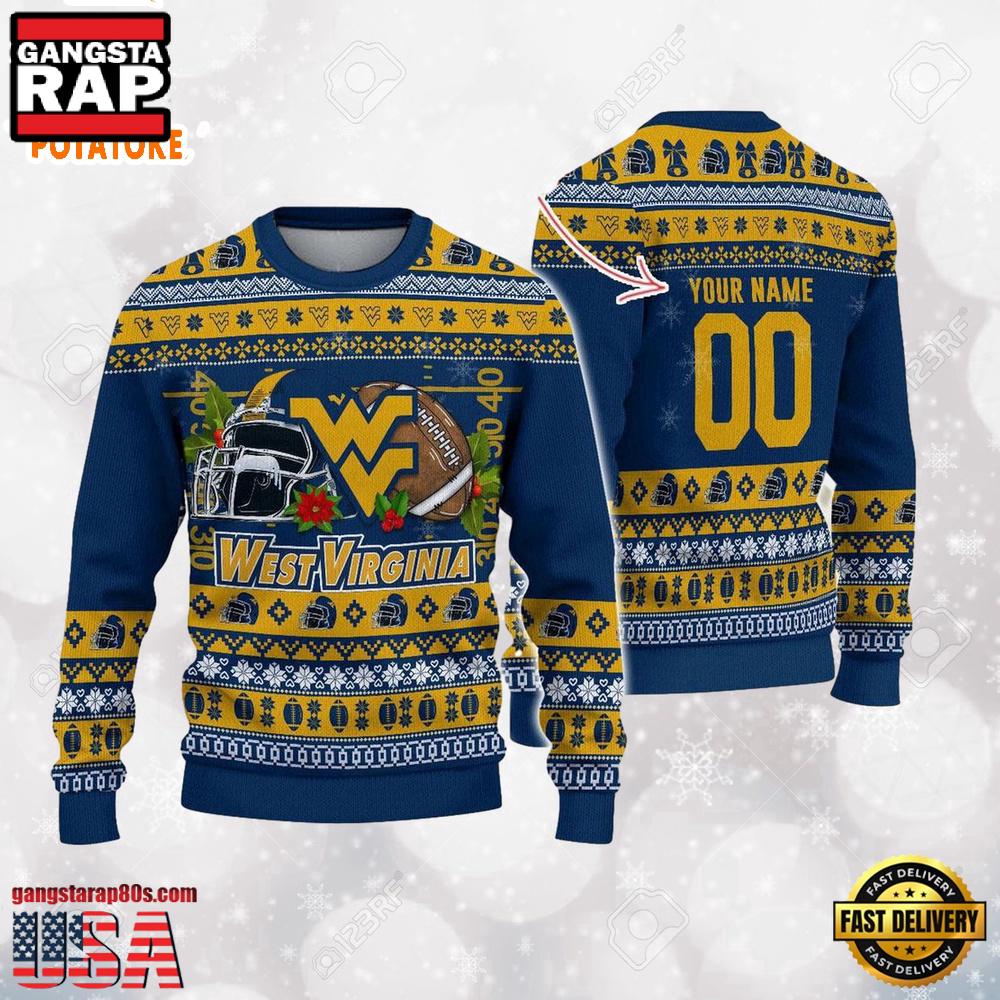Targeted towards fans of the West Virginia Mountaineers and enthusiasts of collegiate sports, this sweater taps into the current trend of combining team spirit with seasonal flair. Wearing this sweater is not just about showcasing school pride; it’s about celebrating the traditions and camaraderie of football season. The unique design is an excellent way to bring a cheerful yet playful vibe to any festive occasion.
