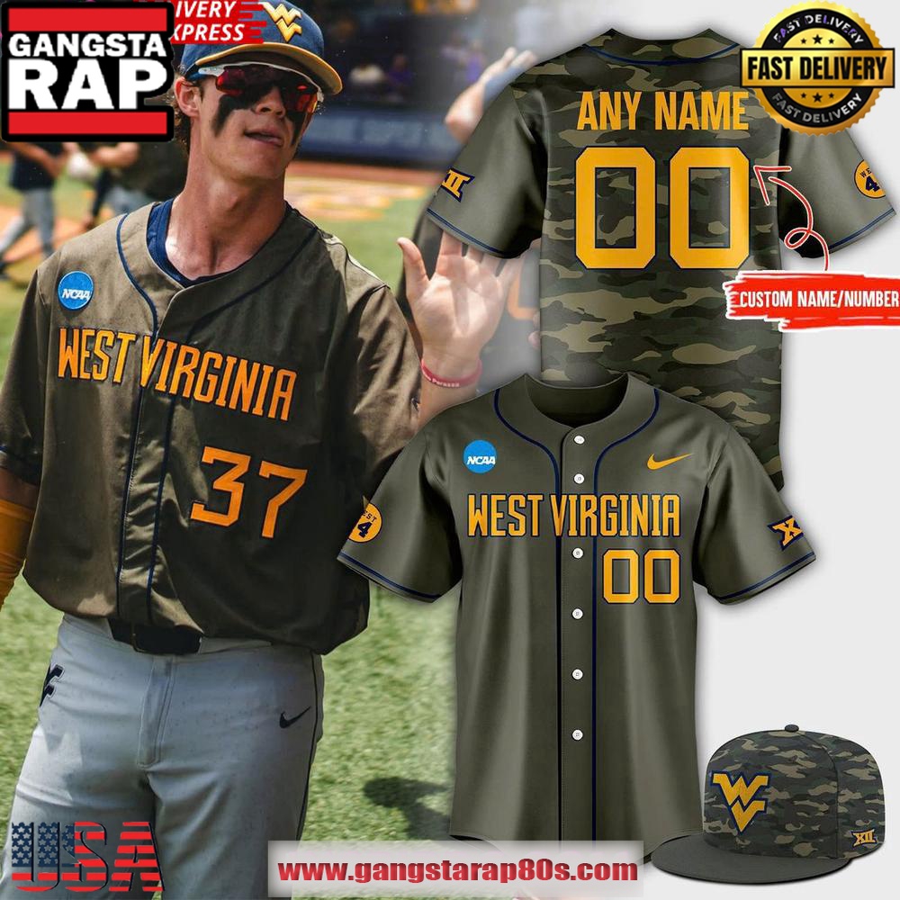 West Virginia Mountaineers Military Appreciation 2025 Camo Baseball Jersey Shirts
