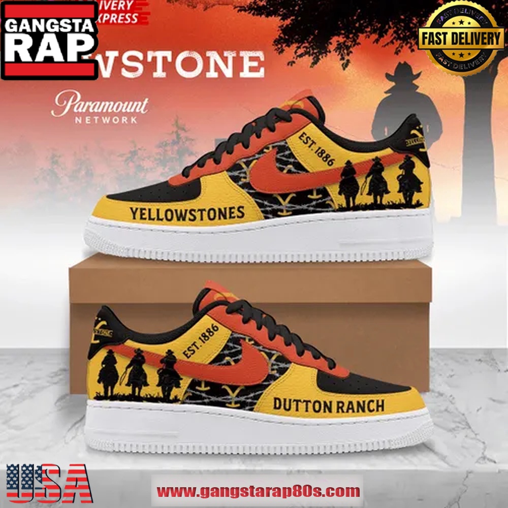 Introducing the Yellowstone’s Dutton Ranch Limited Edition Air Force 1 Sneakers, a must-have for collectors and fashion enthusiasts alike. These exclusive sneakers draw inspiration from the iconic Yellowstone TV series, capturing the rugged charm and timeless appeal of the beloved Dutton Ranch. Designed in 2023, these sneakers feature unique design elements such as rich leather accents and rustic embroidery, making them a standout piece in any wardrobe.